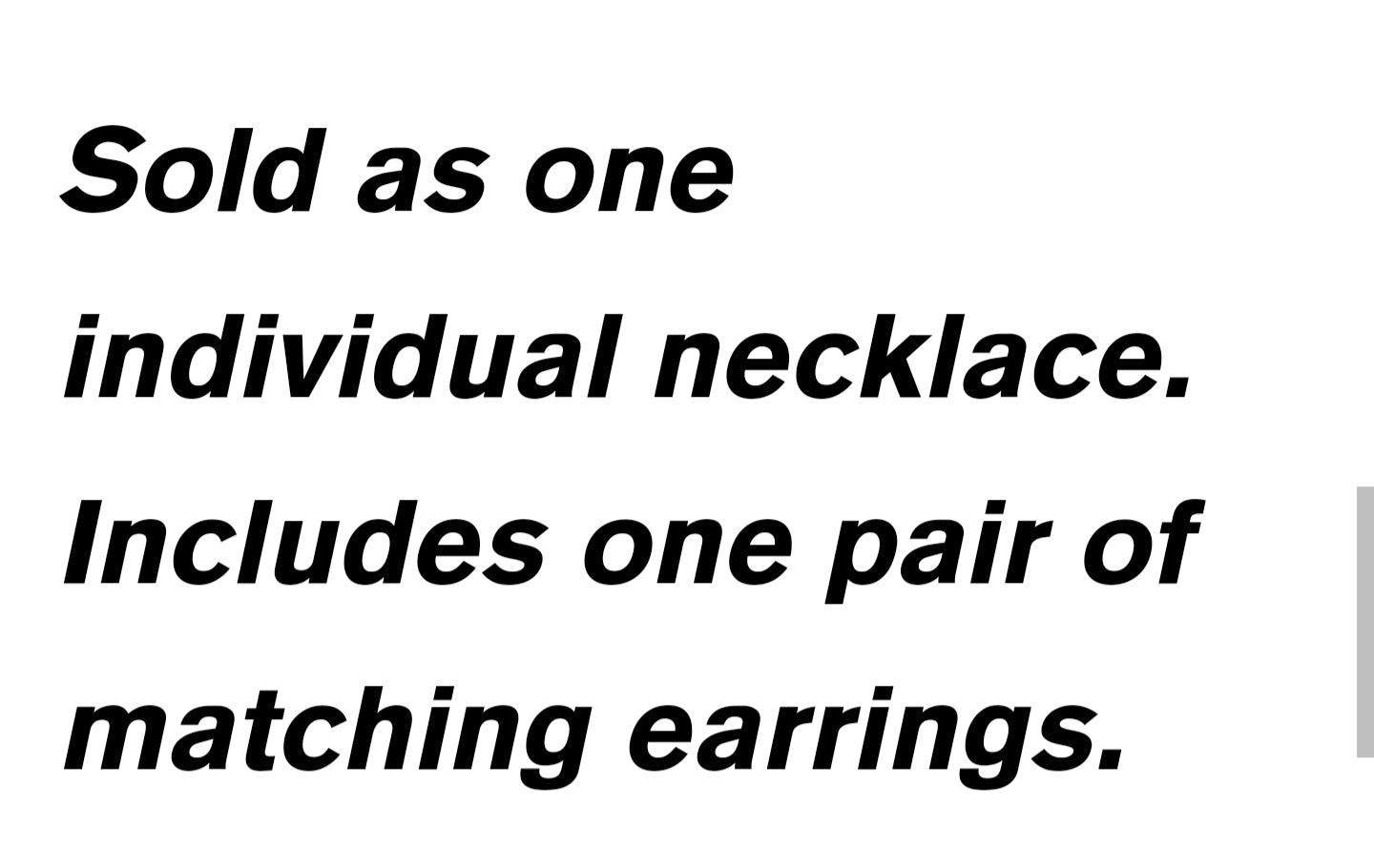 Sold as one individual necklace. Includes one pair of matching earrings.